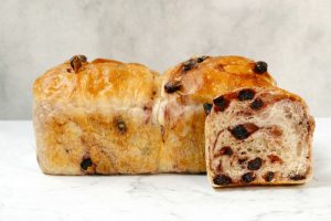 加水率90%を誇るブール生地に、ドライブルーベリーを練りこんで“食パン”に仕上げました。